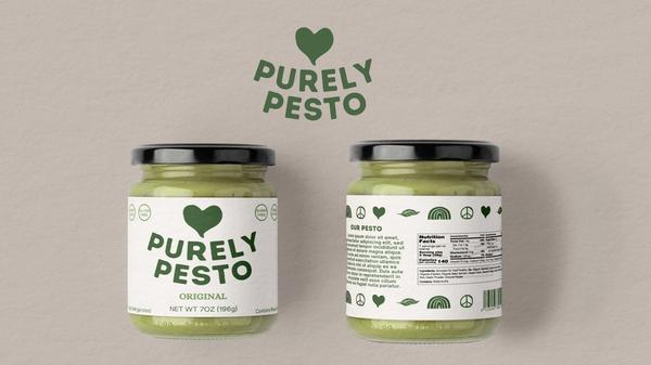 4th June 2025 Purely Pesto This is the packaging and logo I designed for Purely Pesto, as part of a rebrand for the company